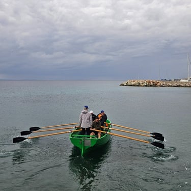 Back at the marina we jump into our Yal — a unique rowing boat, a real sports machine on the water.